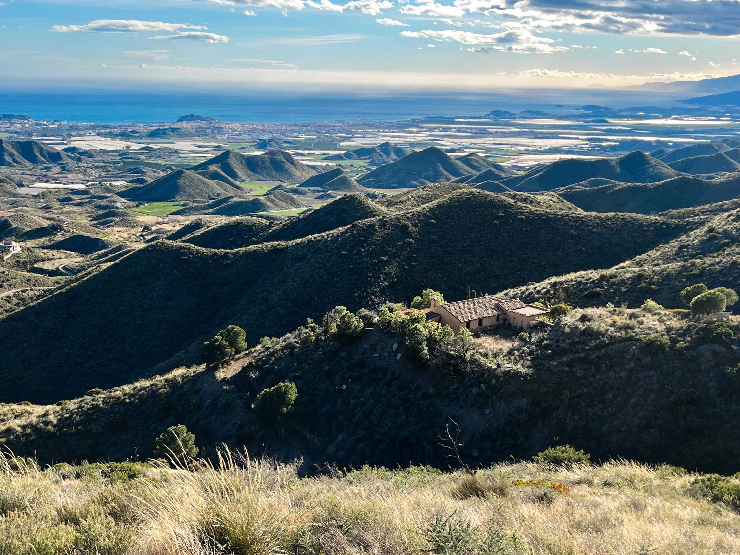 A detached, single-storey house in excellent condition, situated on a hillside in an elevated, exposed position. Views across the entire region as far as the sea.